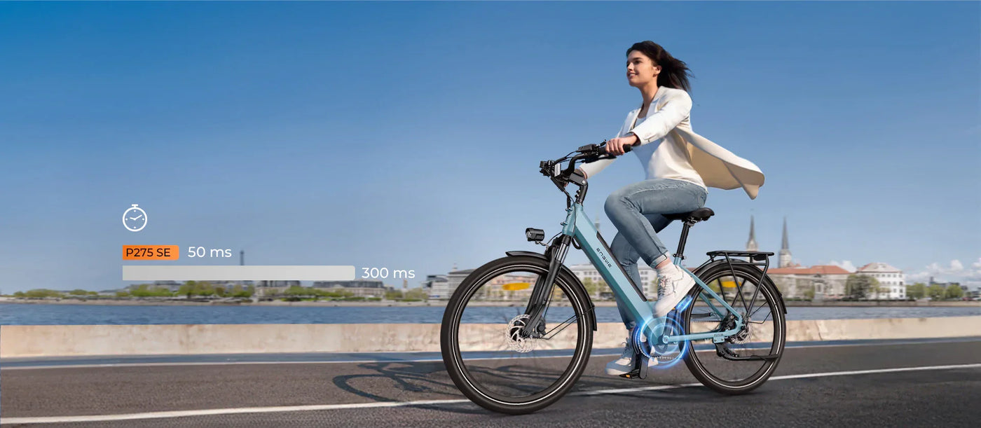 Bici elettrica da città con motore da 250 W, sensore di coppia intelligente e autonomia di 100 km