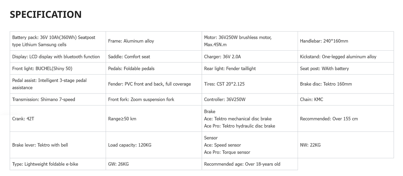 Le Ace e Ace Pro presentano un design pieghevole per un facile trasporto e stoccaggio, rendendole veicoli ideali per i pendolari. Dotata di batteria integrata nel tubo sella e funzione Bluetooth, la serie Ace offre un’esperienza di guida eccezionale grazie alle sue eccellenti caratteristiche e al design elegante. L’Ace Pro è dotata di freni a disco idraulici e sensore di coppia rispetto all’Ace, un modello migliorato e pensato appositamente per i ciclisti che cercano prestazioni più elevate.