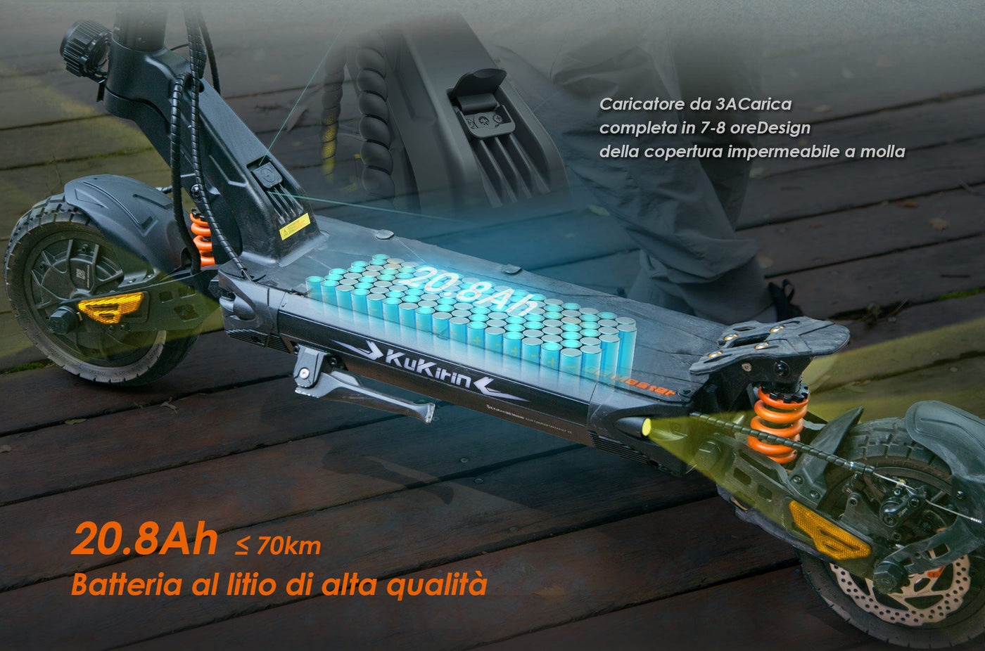 Monopattino elettrico KuKirin G2 Master vanta una batteria ad alte prestazioni da 52 V/20.8 Ah per viaggi prolungati. Con una singola carica, puoi percorrere fino a 70 chilometri, garantendo un'esperienza di guida comoda e duratura.