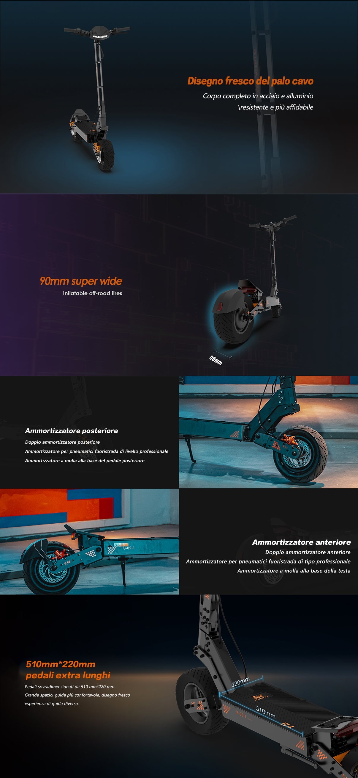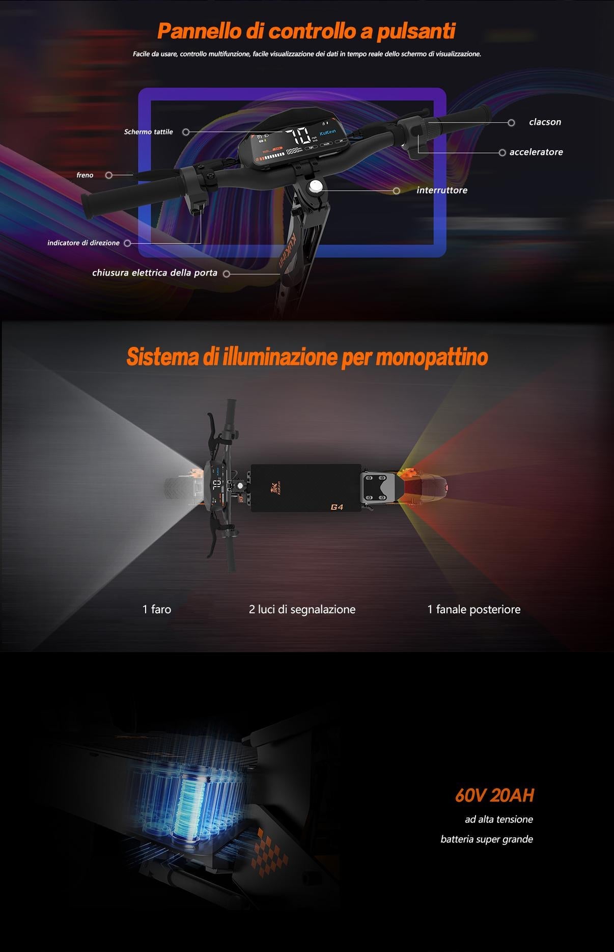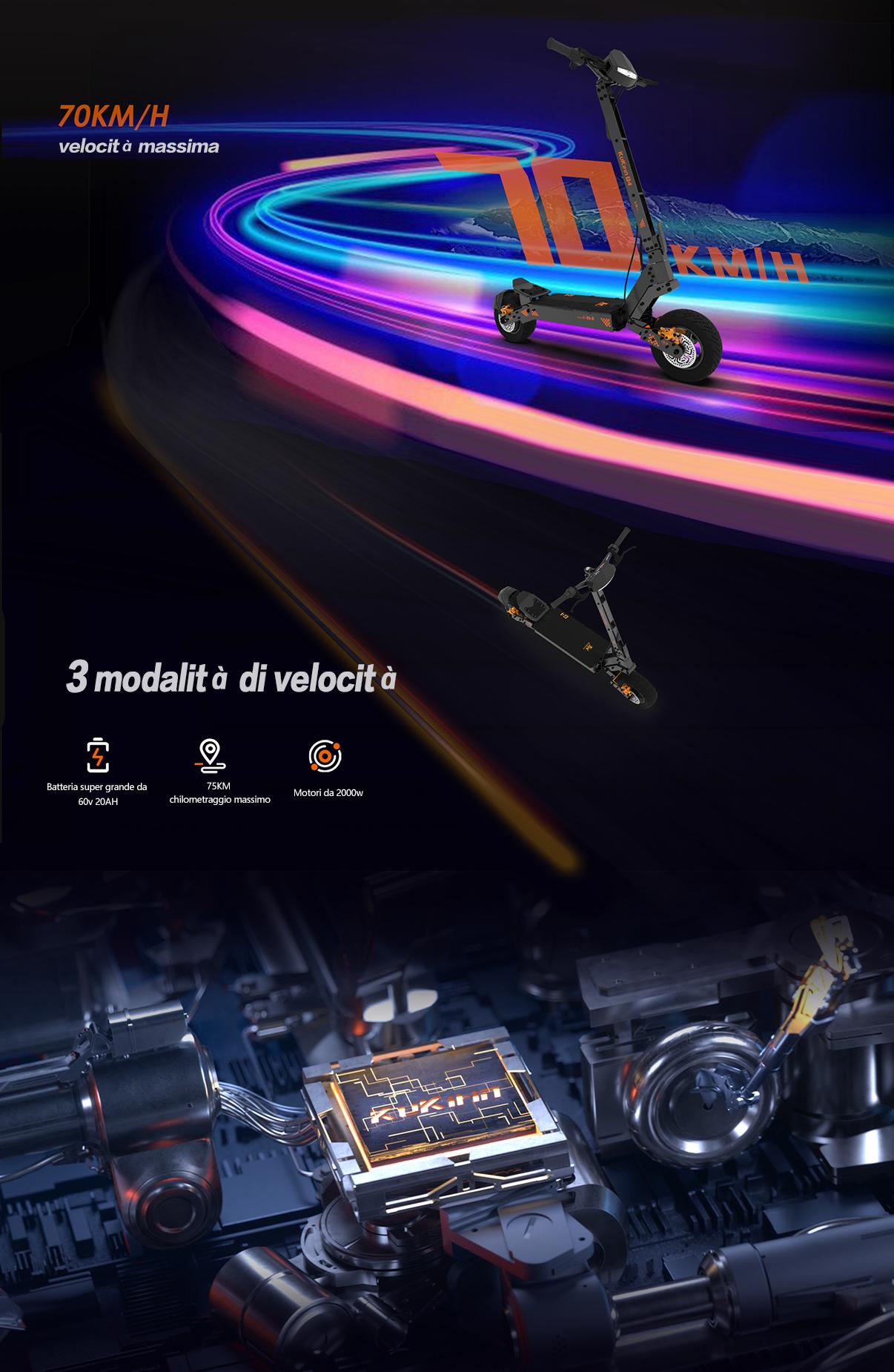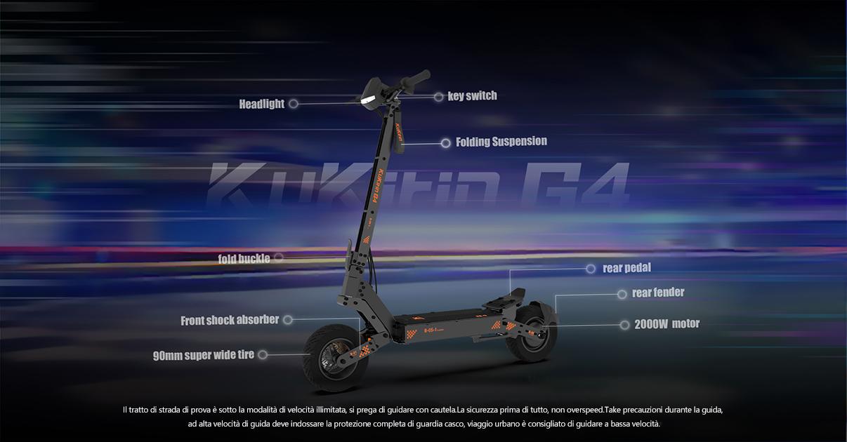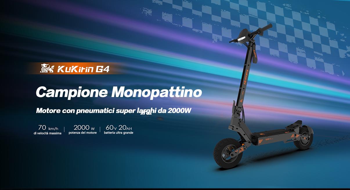 Monopattino elettrico KuKirin G4 con batteria da 60 V 20 Ah, motore brushless da 2000 W, autonomia di 75 chilometri, velocità massima di 70 km/h, ruote pneumatiche da 11".